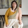 MOONCRUSH is a cool color-blocked day dream of a sweater, designed for play in both the knitting and the wearing. With deep armholes and seamless set-in sleeves, Mooncrush features a boxy, sporty silhouette that is equally well-matched with your favorite slacks or under a cozy jumpsuit. The pattern includes 9 sizes, options for cropped or full length, options for a scoop neck or crew neck, tips for working intarsia, yarn requirements and instructions for making a 2- or 3-color version, and original charts for the intarsia panels across the size range.