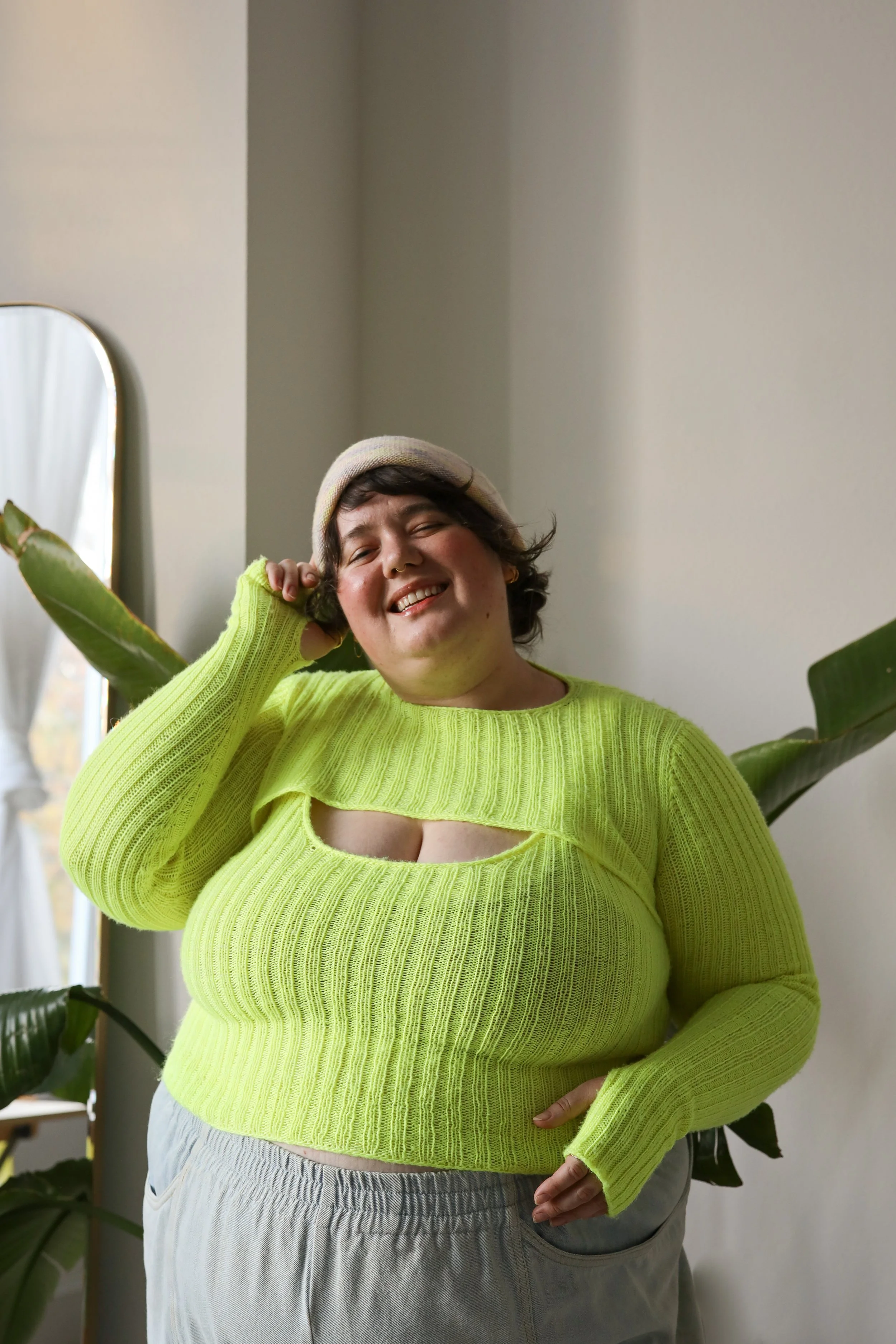 I take 1-3 test knitters per size. Test knitters are selected based on applicants' experience and the quality of their photos of finished objects on Instagram and/or Ravelry. You must have a public Instagram account to test knit, and you must be willing to post pictures of yourself (or a friend) wearing the completed piece to Instagram OR Ravelry. At the completion of the test knit, test knitters receive compensation in the form of a copy of the final pattern in their Ravelry library and a coupon to add any one additional pattern of mine to their Ravelry library (this coupon will not expire). Test knitters who complete their piece and post pictures in time will be featured in the sizing post on my blog at www.jacquelinecieslak.com when the pattern is released, which will link to their IG account and Ravelry project page. Test knitters are encouraged to use whatever yarn they would like — I prefer to see a wide range of yarns (at different price points and in different fibers) in my test knits! Unfortunately, I cannot provide yarn support for most testers, and information about need-based yarn support or possible discounts for test knitters is only available after selection.